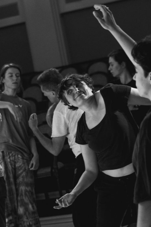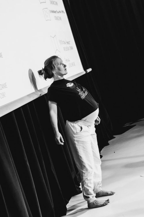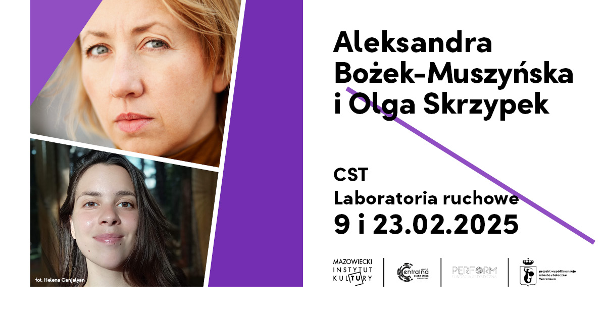 Aleksandra Bożek-Muszyńska – improwizatorka, choreografka i performerka. Łączy doświadczenie KI, pracę somatyczną i poczucie humoru. Kształciła się m.in. w SNDO i Somatische Akademie. W pracy bada relację między prostotą a eksperymentem, prezentacją a facylitacją. Najlepiej czuje się, gdy może tworzyć i improwizować.